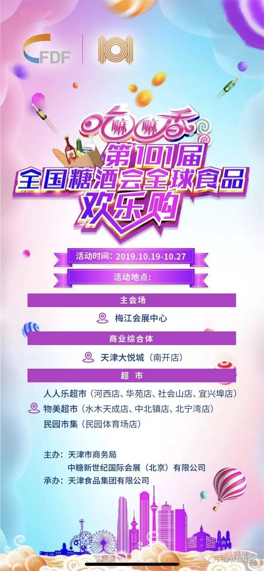 為了進一步促進第101屆全國糖酒會在津舉辦期間參展企業的相互聯動,更好地讓天津市民感受到糖酒會的推廣氛圍,由市商務局、中糖新世紀國際會展公司主辦,天津食品集團承辦的“糖酒會全球食品歡樂購”活動于10月19日正式啟動。在各商圈、超市的大力支持下,糖酒會組委會首次為落地主辦城市舉辦了此項活動,得到了參展企業的一致贊譽。