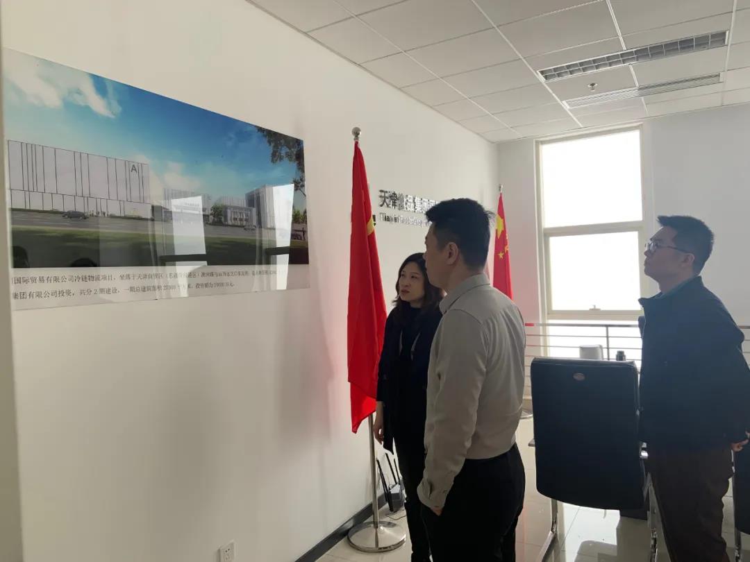 郟雷一行深入了解了天食國貿公司成立以來業務開展和經營情況,仔細詢問了冷鏈物流項目建設的進展情況,并聽取了詳細匯報。