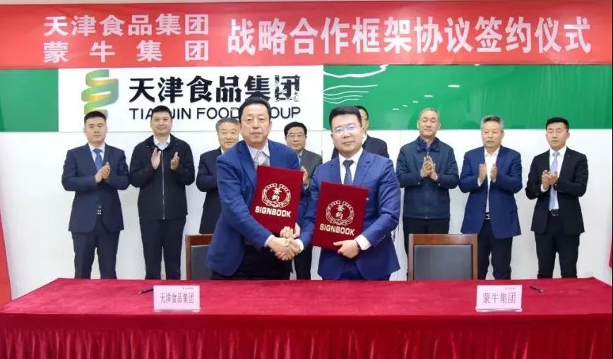 12月28日,天津食品集團(tuán)與蒙牛集團(tuán)舉行戰(zhàn)略合作框架協(xié)議簽約儀式。天津市農(nóng)業(yè)農(nóng)村委黨委書記、主任王寶雨,河西區(qū)區(qū)委書記李學(xué)義,蒙牛集團(tuán)副總裁郭曉斌,食品集團(tuán)黨委書記、董事長萬守朋,黨委副書記、總經(jīng)理趙國榮,黨委委員、總經(jīng)理助理畢國生及有關(guān)部門、單位負(fù)責(zé)同志出席儀式。食品集團(tuán)副總經(jīng)理張慶東與蒙牛集團(tuán)奶源事業(yè)部副總經(jīng)理程曉飛代表雙方簽署協(xié)議。
