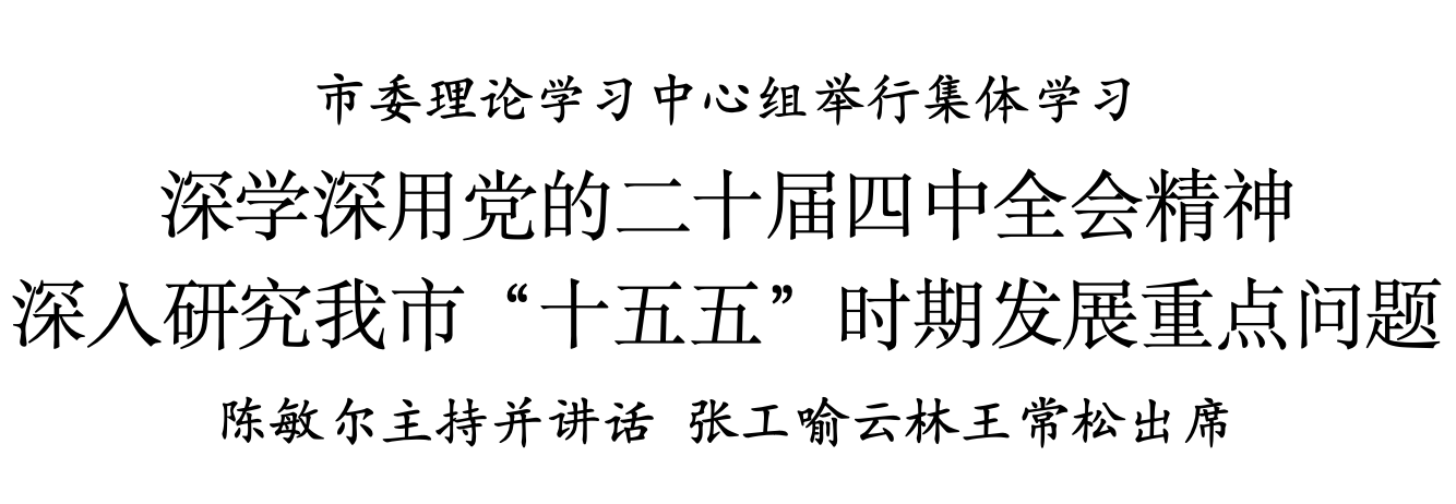 11月10日,十二屆市委理論學(xué)習(xí)中心組舉行集體學(xué)習(xí),認(rèn)真學(xué)習(xí)貫徹黨的二十屆四中全會(huì)精神,結(jié)合深入貫徹落實(shí)習(xí)近平總書(shū)記視察天津重要講話(huà)精神,聯(lián)系思想和工作實(shí)際,交流學(xué)習(xí)體會(huì),研究我市“十五五”時(shí)期發(fā)展重點(diǎn)問(wèn)題,進(jìn)一步明確工作思路舉措,推動(dòng)全會(huì)部署落地落實(shí)。
