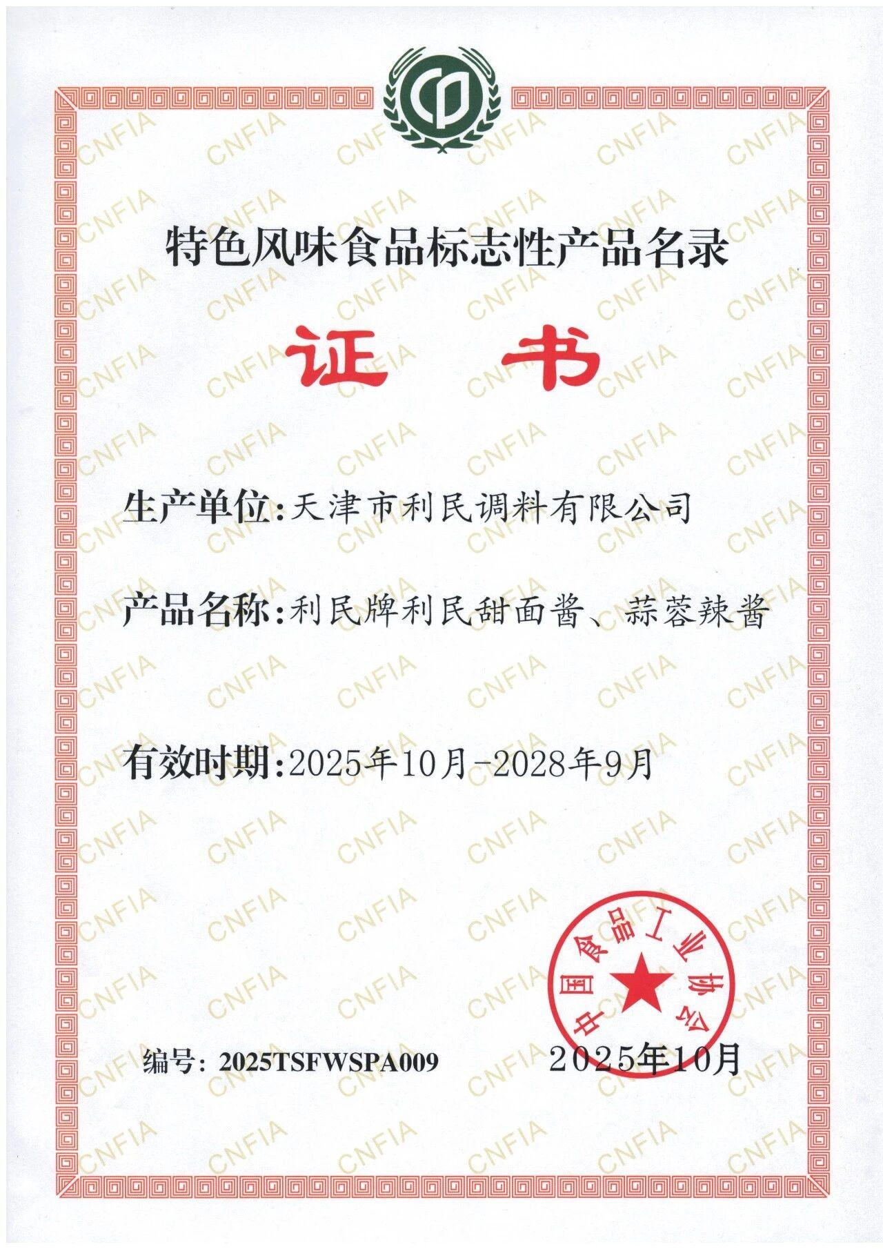 近日,利民公司喜訊頻傳,“利民”品牌獲評2024-2025年度天津市首批消費名品企業品牌稱號,旗下經典產品利民甜面醬、蒜蓉辣醬成功入選中國食品工業協會認定的第二批“特色風味食品標志性產品名錄”,品牌發展與產品實力獲得市場與行業的高度認可。