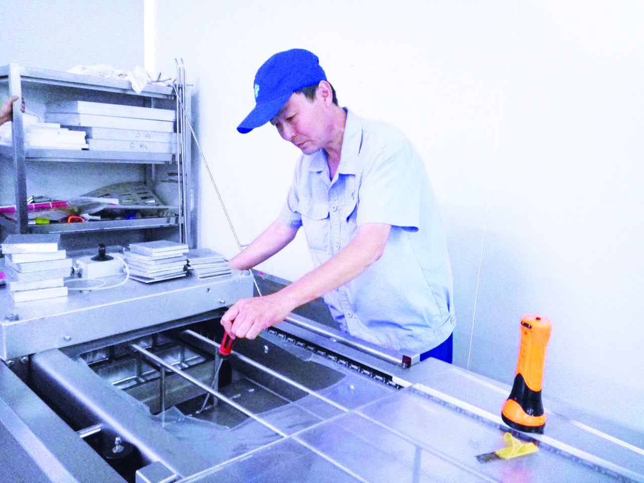 每年春節(jié)前,廠里的禮盒都是有車間職工生產(chǎn)后根據(jù)客戶需求進行組裝。2016年春節(jié)團購業(yè)務(wù)量大,熟肉制品分廠雇用了計件工承包組裝禮盒的任務(wù),但就在原計劃禮盒任務(wù)完成計件工都撤離后,銷售部門又給車間臨時加了6000盒的禮盒任務(wù)。那邊是企業(yè)對于客戶的承諾,這邊是沒有人手,一時間企業(yè)也是犯了難。朱躍華作為設(shè)備維護人員,這項工作本來和他關(guān)系不大,但是他卻從大局出發(fā),首先考慮的是企業(yè)的利益,第一時間站出來,說:“這活包在我們維修組身上”,于是他積極組織設(shè)備維修組職工和外圍職工一起共擔起了這6000盒禮盒的組裝工作。他帶領(lǐng)著外圍職工們使出了自己最大的能量,加班加點組裝禮盒,春節(jié)期間,正值冬季,為了不影響車間里的正常生產(chǎn),他們組裝禮盒時就利用配料車間,那個車間里不僅沒有暖氣而且還要有打冷風機,非常寒冷。但在朱躍華的帶動下,大家的干勁卻是熱火朝天,干著干著,汗水居然都濕透了衣服。50多歲的朱躍華不僅干起活來不在話下,作為“老大哥”的他,還親自給大家安排了可口的工作餐,保證了加班員工的干勁和情緒,在他的帶領(lǐng)下,僅僅用了兩天的時間就全部完成了6000盒任務(wù)的臨時訂單,確保了銷售任務(wù)的順利完成。